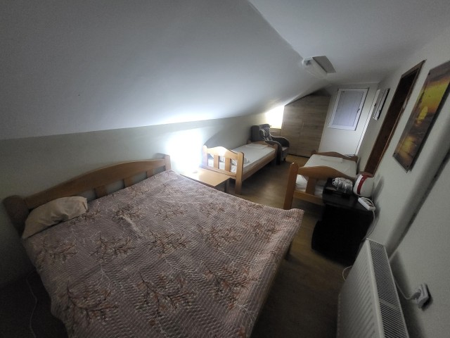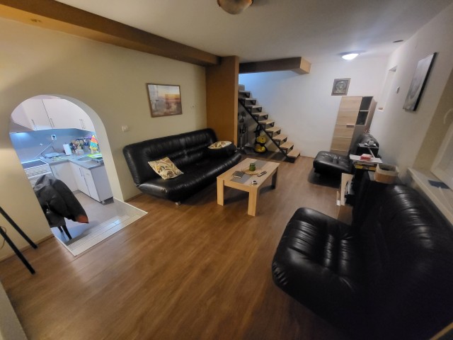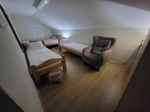 Enterijer vile je moderno stilizovan i potpuno opremljen za uživanje na dužem ili kraćem boravku. Prizemlje kuće je direktno povezano sa imanjem. Na raspolaganju su dnevna soba, trpezarijski kutak, opremljena kuhinja i kupatilo u prizemlju, kao i spavaća soba koja poseduje jedan francuski ležaj i dva odvojena kreveta samca.
