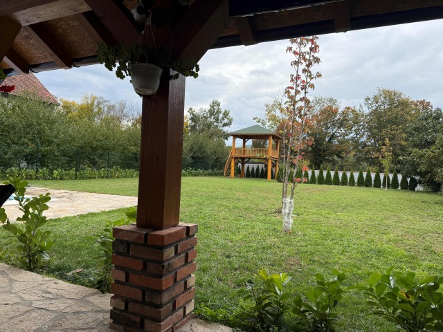 Kuća sa bazenom, za odmor, druženje i uživanje, kopletno opremljena, čeka na vas. Veoma mirno okruženje, poseduje veliko dvorište, otvoreni bazen, sobu za druženje, stoni fudbal, garažu. Gornji deo kuće ima dnevni boravak sa dve spavaće sobe, čajnom kuhinjom, kupatilom i dve velike terase. Donji deo kuće ima veliku sobu za druženje sa kompletno opremljenom kuhinjim i kupatilom. Izlazi na sredjenu stazu za šetnju pored reke koja je duga 2,5km. U blizini kuće je etno selo Sunčana reka, sa različitim sadržajima, restoranom, sportskim terenima. Minimalan broj nocenja za avgust mesec je 3 dana ukoliko se rezervacija odnosi na vikend.